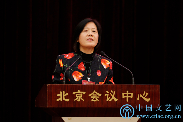 1月8日,中国文联十届五次全委会在京闭幕。图为安徽省文联党组书记、副主席、书记处第一书记何颖在中国文联十届五次全委会第二次全体会议上作交流发言。中国文艺网 高晴摄