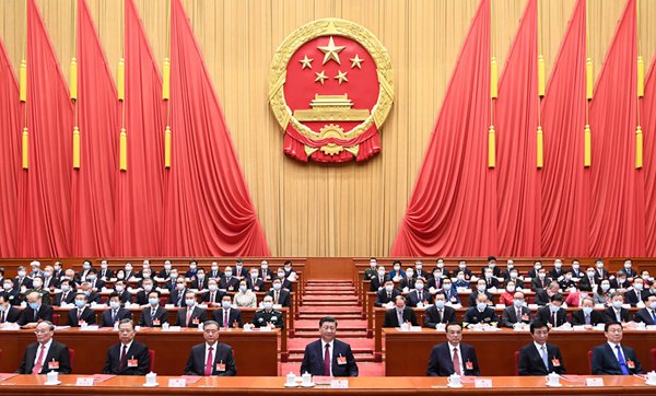 习近平、李克强、汪洋、王沪宁、赵乐际、韩正、王岐山和大会主席团成员在主席台就座。
