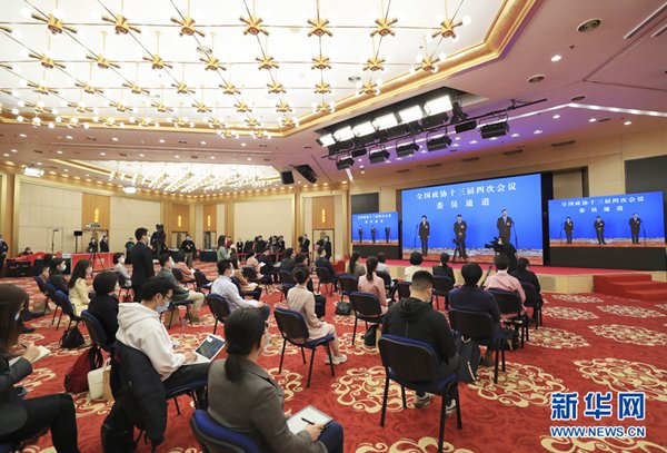 3月7日,全国政协十三届四次会议第二场“委员通道”采访活动在北京人民大会堂新闻发布厅举行。这是分会场。新华社记者 王南 摄