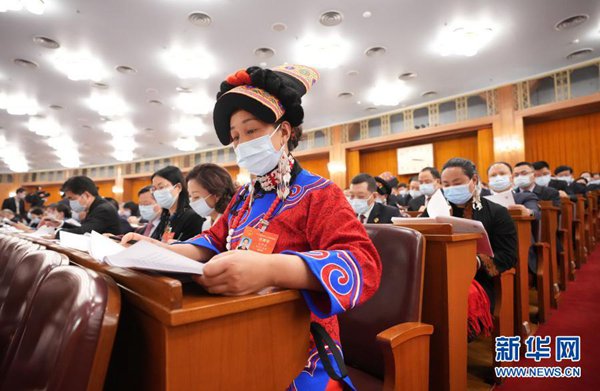 3月8日,十三届全国人大四次会议在北京人民大会堂举行第二次全体会议。这是代表们在认真听会。新华社记者 王毓国 摄