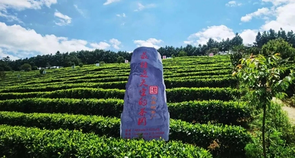 矗立在云龙大栗树茶厂的石刻标记上写着“最接近天空的茶园”