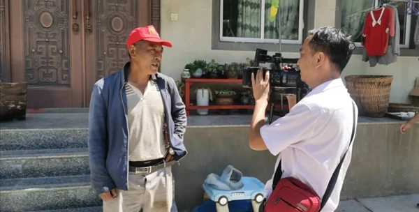靠茶脱贫的茶农阿文聪在接受媒体采访