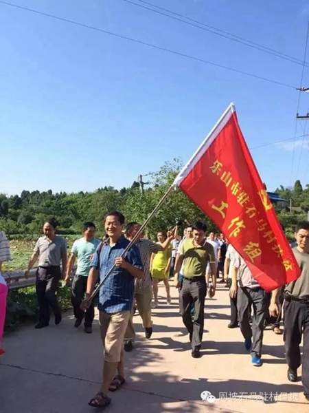 2015年7月底的乐山市扶贫干部“出征大会”上,我作为259名省定贫困村“第一书记”代表,上台与市领导签订《精准扶贫责任书》。会后第4天,手举猎猎飞舞的“乐山市驻石马村扶贫工作组”红旗,我迎着乡亲们有些疑惑的眼光,开始长达1000多天的驻村扶贫。