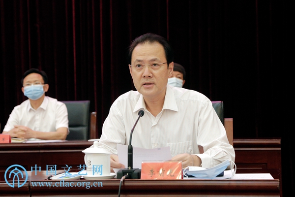 7月28日至29日,中国文联第十届全国委员会第七次会议在京召开。图为中国文联党组书记、副主席李屹就学习宣传贯彻习近平总书记在庆祝中国共产党成立100周年大会上的重要讲话精神作辅导动员,并通报《中国文联第十届主席团第九次会议关于推举中国文联书记处书记的决定》。