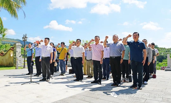 7月13日上午,海南省文联作协全体机关干部走进母瑞山革命根据地纪念园开展红色主题教育培训活动。省文联作协党组书记、省文联主席夏斐带领全体党员重温入党誓词,深切缅怀革命先烈的丰功伟绩。