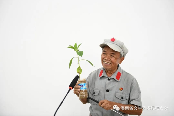 83岁共产党员王学广老馆长捧着一棵“革命菜”,为省文联作协全体党员干部作了关于弘扬母瑞山革命精神的精彩演讲。在缺衣缺粮的母瑞山革命斗争时期,这种野菜为红军战士们提供了不可或缺的食粮,被大家亲切的命名为“革命菜”。通过王学广老馆长的生动讲述,大家经历了一次刻骨铭心的心灵洗礼。