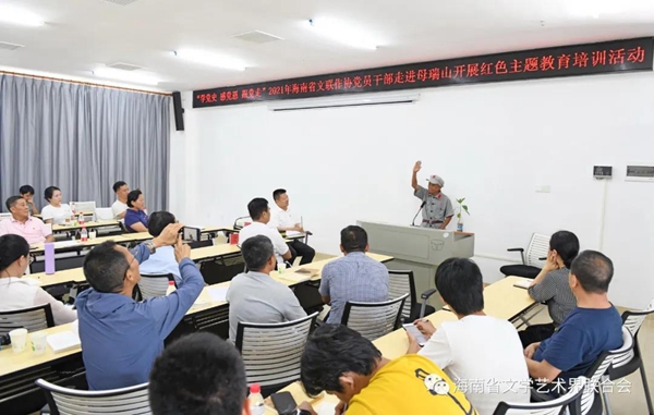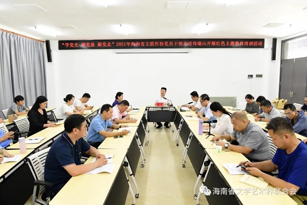 心中有信仰,脚下有力量。省文联作协党组书记、省文联主席夏斐结合学习宣传贯彻习近平总书记“七一”重要讲话精神,为此次红色主题教育培训活动作总结讲话(全文另发)。他表示,当前海南正处于推进中国特色自由贸易港建设的关键阶段,作为党的文艺工作者,省文联作协机关干部要大力弘扬理论联系实际的马克思主义学风,激发创业干事的热情,把学习成效转化为推动海南自由贸易港建设的具体行动,为海南文艺繁荣发展提供深厚的理论支撑、注入强大的精神动力。我们要深入学习贯彻沈晓明书记在年初关于“解放思想、敢闯敢试、大胆创新”的指示要求,结合开展“宣传工作机制创新年”活动和文联深化改革,贯彻新发展理念,创造性开展工作,学习发扬“扎根守土、坚韧不拔、无私奉献”的椰树精神,永远保持信念坚定的政治本色,永远保持解放思想、大胆创新的精气神,永远保持共产党人的优良作风,履行好主责主业,既要体现“文”的特点,又要突出“联”的优势,更要形成“界”的实力,坚持正确导向,加强对文艺界、对文艺工作者创作方向上的引领,集中推出一批讴歌党、讴歌祖国、讴歌人民、讴歌英雄的文艺精品力作,培养一批在全国有一定知名度的优秀作家和艺术家,打造一批具有较高市场性价比的文艺品牌项目,推出一批有较强竞争力的艺术创作生产品牌机构,在文艺界形成争先创优、共创繁荣的良好局面,奋力建设文化强省和具有强大软实力的自贸港。