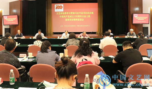 7月15日,“文艺评论界学习贯彻习近平总书记在庆祝中国共产党成立100周年大会上的重要讲话精神座谈会”在京召开。图为座谈会现场。中国文艺网 包梦暄 摄