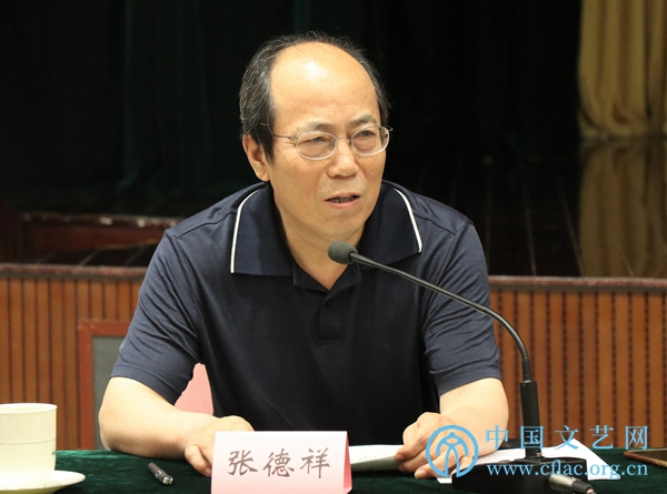 7月15日,“文艺评论界学习贯彻习近平总书记在庆祝中国共产党成立100周年大会上的重要讲话精神座谈会”在京召开。图为中国文艺评论家协会副主席张德祥发言。中国文艺网 包梦暄 摄