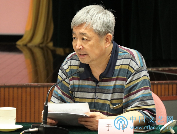 7月15日,“文艺评论界学习贯彻习近平总书记在庆祝中国共产党成立100周年大会上的重要讲话精神座谈会”在京召开。图为文艺评论家代表于平发言。中国文艺网 包梦暄 摄