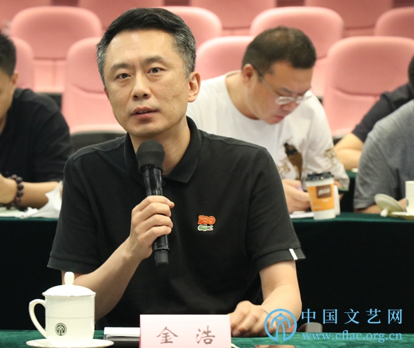 7月15日,“文艺评论界学习贯彻习近平总书记在庆祝中国共产党成立100周年大会上的重要讲话精神座谈会”在京召开。图为文艺评论家代表金浩发言。中国文艺网 包梦暄 摄