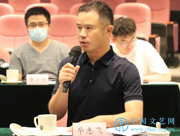 7月15日,“文艺评论界学习贯彻习近平总书记在庆祝中国共产党成立100周年大会上的重要讲话精神座谈会”在京召开。图为文艺评论家代表毕志飞发言。中国文艺网 包梦暄 摄