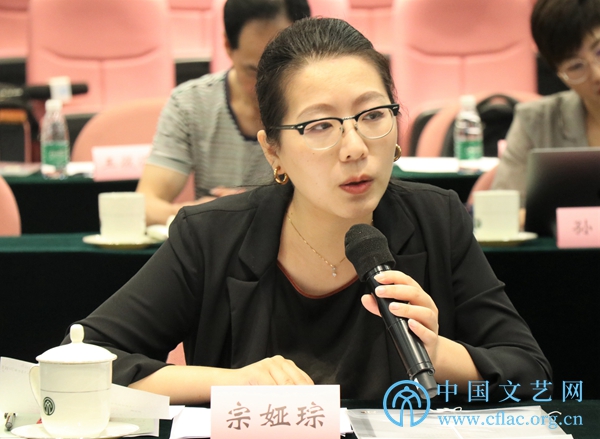 7月15日,“文艺评论界学习贯彻习近平总书记在庆祝中国共产党成立100周年大会上的重要讲话精神座谈会”在京召开。图为文艺评论家代表宗娅琮发言。中国文艺网 包梦暄 摄