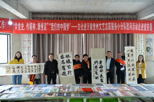 为深入学习贯彻习近平总书记在党史学习教育动员大会上的重要讲话精神,在喜迎中国共产党成立100周年之际,根据《中国文联关于开展“学党史、传精神、跟党走”——中国文艺志愿者在行动主题活动的通知》精神,5月25日,贵州省文联组织省音协、省曲协、省摄协、省书协文艺志愿者到瓮安县慰问劳模。省文联文艺家协会工作部副主任朱锦东一行9人,瓮安县黄红缨、潘光华、宋碧勇、向时涛4位劳模,瓮安县文联机关及下属协会有关人员参加活动。