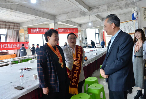 贵州省文联文艺家协会工作部副主任朱锦东和“全国脱贫攻坚先进个人”黄红缨、“全省脱贫攻坚优秀村第一书记”宋碧勇亲切交流