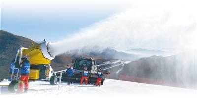 2022年冬奥会崇礼赛区,工作人员在进行人工造雪。 本报记者 贺 勇摄