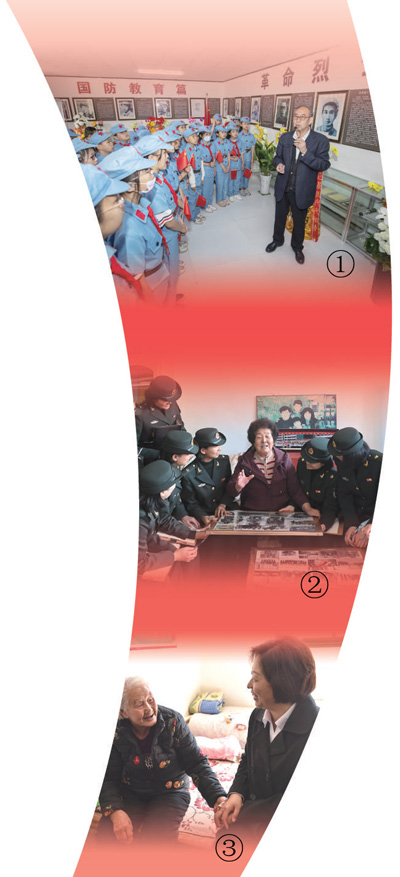 图②:刘胡兰英雄民兵班战士到第二任老班长郭玉莲家中聆听革命故事。刘亮亮摄(人民视觉)