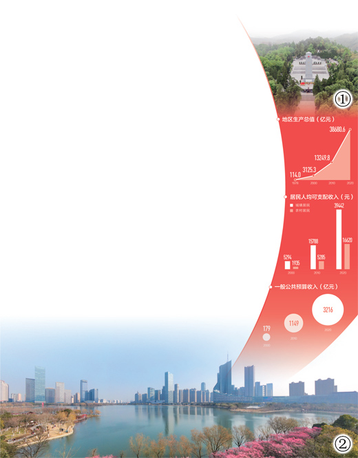 安徽红色基因代代传承,革命精神红遍江淮。建党百年来,安徽在党的坚强领导下,砥砺前行、改天换地。党的十八大以来,习近平总书记两次亲临安徽考察指导,作出一系列重要指示,指明了安徽高质量发展之路。我们不忘初心、牢记使命,增强“四个意识”、坚定“四个自信”、做到“两个维护”,团结带领全省人民坚定地把总书记的殷切嘱托转化为思路举措和强大动力,取得四大历史性成就。一是发展阶段从“总量居中、人均靠后”向“总量靠前、人均居中”迈进,GDP由2016年2.6万亿元增长到2020年3.9万亿元,从全国第十四提升到第十一;人均GDP从全国第二十五提升到第十三;今年一季度经济增速居全国第五、总量居全国第十;二是发展动力从“要素驱动为主”向“创新驱动为主”迈进,科技创新攻坚力量体系加快构建,区域创新能力稳居全国第一方阵;三是发展格局从“承东启西”向“左右逢源”迈进,长江经济带、长三角一体化、中部地区高质量发展等国家战略叠加覆盖,安徽在全国的位势越来越突出;四是发展成色从“总体小康”向“全面小康”迈进,绝对贫困问题得到历史性解决。