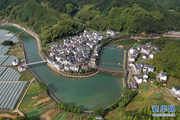 空中俯瞰浙江省杭州市淳安县下姜村(2017年8月9日摄,无人机照片)。新华社记者 黄宗治 摄
