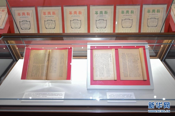 这是6月26日在北大红楼拍摄的刊登李大钊《布尔什维主义的胜利》《我的马克思主义观》的《新青年》5卷5号(右)、6卷5号(左)原件。新华社记者 谢晗 摄