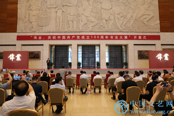 6月19日,“伟业:庆祝中国共产党成立100周年书法大展”在中国国家博物馆开幕。图为开幕式现场。中国文艺网 李想 摄