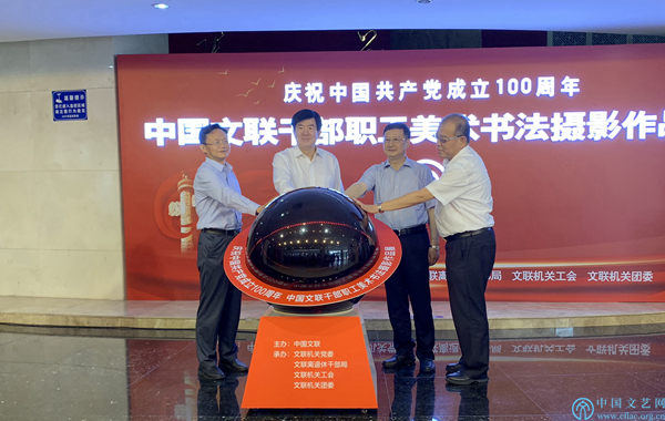 6月10日,由中国文联主办,中国文联机关党委、中国文联离退休干部局、中国文联机关工会联合会、中国文联机关团委承办的“庆祝中国共产党成立100周年 中国文联干部职工美术书法摄影作品展”在文艺家之家展览馆开幕。图为中国文联党组书记、副主席李屹,中国文联党组成员、副主席胡孝汉,中国文联党组成员徐永军,中国文联党组成员、书记处书记董耀鹏为展览启幕。中国文艺网 王丽摄