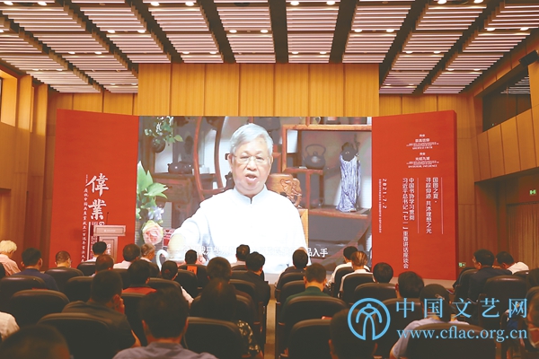 书法家代表王研充和明松华分别讲述自己在撰文和创作过程中“寻踪”革命先行者的事迹,与大家一起感受革命先辈舍生忘死、坚如磐石的初心。艺术家臧金生声情并茂地为大家讲述几位英雄的感人故事;陈铎和虹云两位艺术家倾情联袂,朗诵本次大展参展书家谢少承撰写的《潜伏在敌人心脏的冷少农》,几位朗诵艺术家用声音助阵“伟业展”,给现场观众带来了听觉盛宴,在声临其境中再次释放出爱党爱国的神圣情怀。