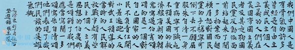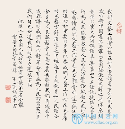 孙晓云在致辞中说,我们以饱蘸深情的笔墨和饱含感情的声音将英雄的故事展现在国家的殿堂,他们不一定是家喻户晓的英雄人物,更多的是需要到县市级的革命纪念馆去翻阅发黄的档案,方能找到一些模糊的线索的鲜为人知的革命人士,或是烈士陵园中那一座座无名的墓碑,他们的身躯早已在战争的硝烟里消逝……正是这千千万万的革命战士、用血肉筑成的万里长城来保家卫国,才有今日祖国的繁荣发展、人民的幸福安乐。这正是人民大众的力量,在中国共产党的领导下创造了光辉的历史。书法,更从书斋走向广阔的时代天地,我们将踏着革命先烈的足迹,以一颗为党为人民的赤诚之心,用实际行动书写新中国的伟业鸿篇。