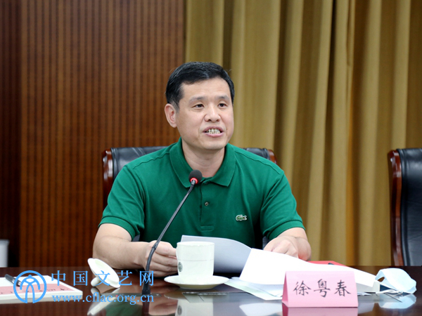 7月22日,“庆祝中国共产党成立100周年主题电影研讨会”在京举办。图为中国文艺评论家协会副主席兼秘书长、中国文联文艺评论中心主任徐粤春致辞。