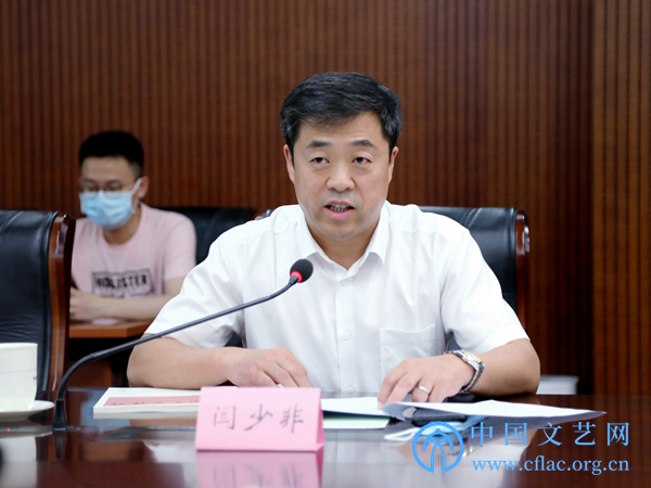7月22日,“庆祝中国共产党成立100周年主题电影研讨会”在京举办。图为中国影协分党组副书记、秘书长闫少非主持会议。