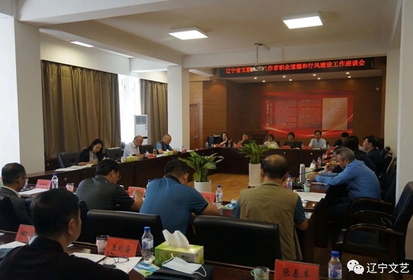 9月15日,辽宁省文联文艺工作者职业道德和行风建设工作座谈会在沈阳召开。省文联党组书记、主席张兴奎,党组成员、副主席、省书协主席胡崇炜,党组成员、副主席武雪梅出席会议,省音协主席刘辉、省美协主席王易霓、省摄协主席线云强、省舞协主席吕萌、省曲协主席崔凯、省民协主席张鹏、省影协主席庚钟银、省视协主席朱文飚、省杂协主席安宁、省剧协副主席田剑峰、省评协副主席胡玉伟等各文艺家协会部分主席团成员、负责同志及艺术家代表参加了座谈会。
