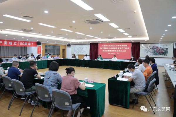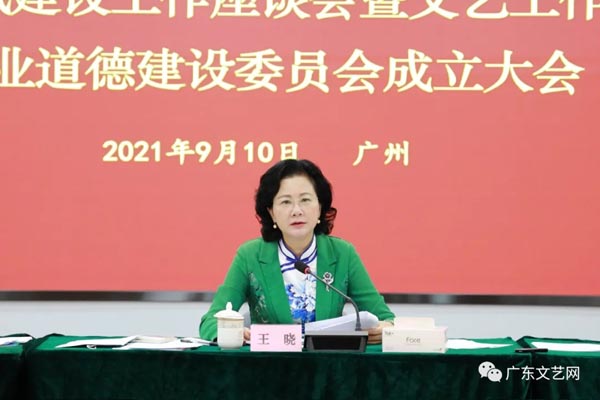 9月10日下午,广东省文联召开文艺工作者职业道德和行风建设工作座谈会暨广东省文联文艺工作者职业道德建设委员会成立大会,深入学习贯彻习近平总书记关于文艺工作的重要论述,贯彻落实中央宣传部部署要求和中国文联工作座谈会精神,聚焦近期文娱行业出现的一些违纪违规、违法失德现象,表达对坚决整治文娱行业违法失德问题、治理不良粉丝文化乱象的态度和共识,着力于提升广东省文艺工作者职业道德素质、推进广东省文艺领域行风建设、推动广东文艺事业和娱乐行业健康发展。广东省文联党组书记、专职副主席王晓出席会议并讲话。广东省文联主席李劲堃主持会议。省文联党组副书记、专职副主席吴华钦,党组成员、专职副主席周华,党组成员、挂职副主席梁军,省委宣传部文艺处二级调研员梅明超,省文联副主席王垂林、张惠建、李鹏程、吴正丹、梁玉嵘,省文联文艺工作者职业道德建设委员会委员,广州、深圳市文联负责人和省级文艺家协会驻会负责人、省文联机关有关部室负责人参加会议。