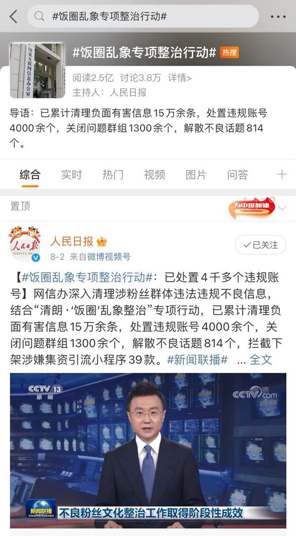 8月2日,官方公布“饭圈乱象专项整治行动”部分治理结果