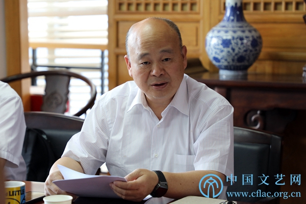 8月26日,中国民协民间文艺工作者职业道德和行风建设座谈会在京召开。图为中国文联副主席、中国民协主席潘鲁生发言。中国文艺网 白安琪 摄