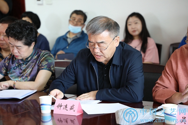 8月26日,中国民协民间文艺工作者职业道德和行风建设座谈会在京召开。图为北京民间文艺家协会理事、东城区民间文艺家协会主席,国家级非遗技传承人常弘发言。中国文艺网 白安琪 摄