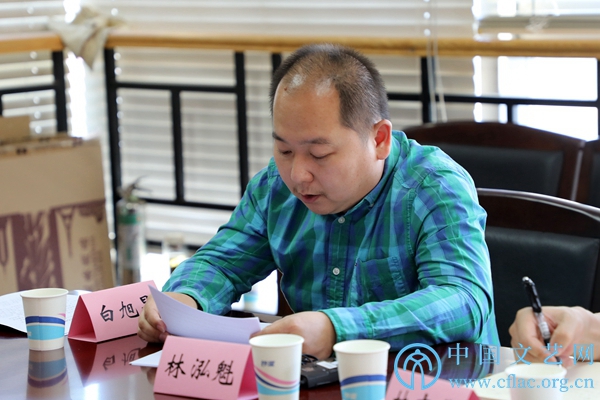 8月26日,中国民协民间文艺工作者职业道德和行风建设座谈会在京召开。图为全国中青年德艺双馨文艺工作者、北京市民协理事林泓魁发言。中国文艺网 白安琪 摄
