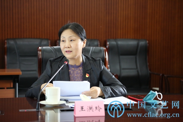 8月25日,中国剧协“加强戏剧界行风建设 弘扬德艺双馨精神”座谈会在京召开。图为北京市河北梆子剧团团长、党总支书记王洪玲发言。