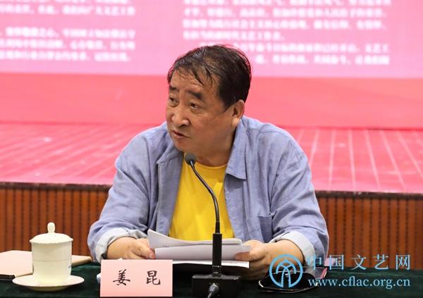 8月25日,“修身守正 立心铸魂——中国曲协曲艺工作者职业道德和行风建设工作座谈会”在京召开。图为中国曲协主席、中国曲协行风建设委员会主任姜昆讲话。中国文艺网 包梦暄 摄