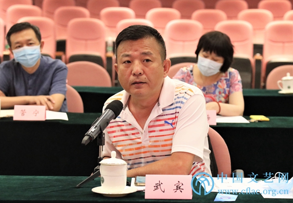 8月25日,“修身守正 立心铸魂——中国曲协曲艺工作者职业道德和行风建设工作座谈会”在京召开。图为中国曲协相声艺术委员会委员、中国广播艺术团相声演员武宾发言。中国文艺网 包梦暄 摄