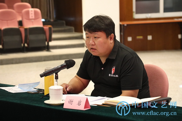 8月25日,“修身守正 立心铸魂——中国曲协曲艺工作者职业道德和行风建设工作座谈会”在京召开。图为北京集贤弘艺文化中心负责人谢岩发言。中国文艺网 包梦暄 摄