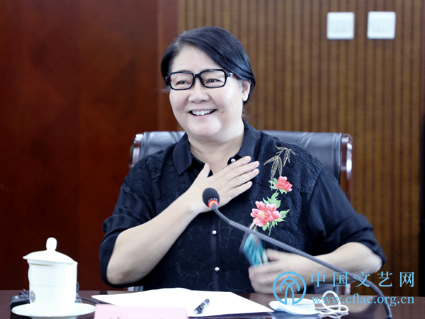 8月25日,“崇德修身 固本培元——中国视协电视艺术工作者职业道德和行风建设工作座谈会”在京召开。图为全总文工团话剧团一级演员萨日娜发言。