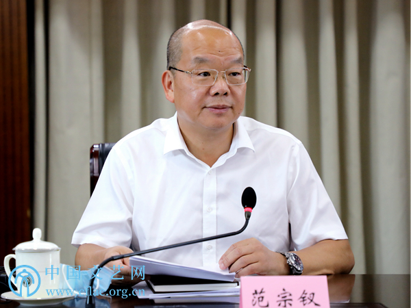 8月25日,“崇德修身 固本培元——中国视协电视艺术工作者职业道德和行风建设工作座谈会”在京召开。图为中国视协分党组书记范宗钗主持会议。
