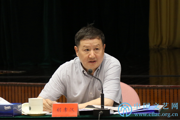 7月5日,中国文联召开党组扩大会议,深入学习领会习近平总书记在庆祝中国共产党成立100周年大会上的重要讲话精神。图为中国文联党组成员、副主席胡孝汉出席会议并发言。中国文艺网 李想 摄