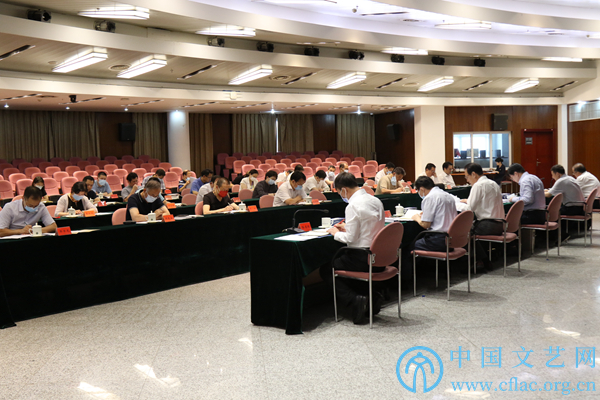 7月5日,中国文联召开党组扩大会议,深入学习领会习近平总书记在庆祝中国共产党成立100周年大会上的重要讲话精神。图为会议现场。中国文艺网 李想 摄
