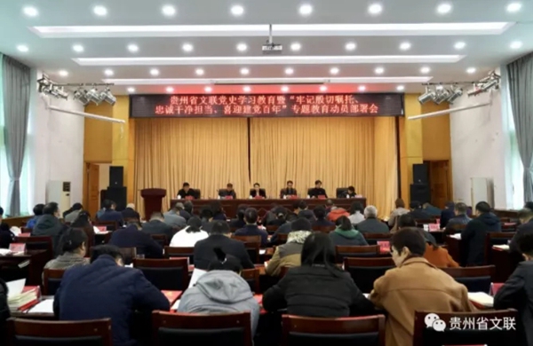 贵州省文联召开党史学习教育暨“牢记殷切嘱托、忠诚干净担当、喜迎建党百年”专题教育动员部署会。会议要求,要以更高的标准、更实的举措、更严的要求,学好党的历史、学好党在贵州的历史,学好党带领全省人民书写的贵州革命建设改革发展史,从党史中汲取历史经验,把握文艺发展历史规律,进一步汲取前行的智慧和奋进的力量,为贵州文艺事业插上强健的翅膀。