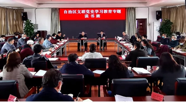 新疆文联举办党史学习教育专题读书班。读书班采取集中学习、讲师授课、讨论交流、自学等形式进行学习。学员们围绕专题学习内容,紧密联系文艺工作实际特别是文艺创作,开展了研讨交流。