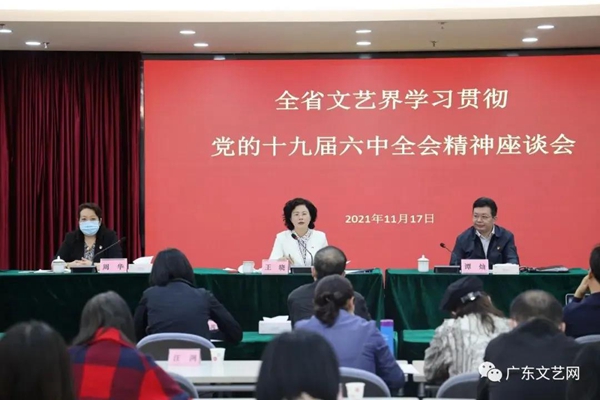广东省文联召开学习贯彻党的十九届六中全会精神座谈会。会议强调,要重点围绕习近平总书记在全会上的重要讲话,围绕《决议》,认真学习领会,深刻把握核心要义、精神实质和实践要求。