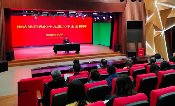 南京市文联组织召开专题学习会,传达学习党的十九届六中全会精神。会议强调,要采取有力有效方式,结合开展党史学习教育、专题党课、组织生活会、支部学习交流会、党小组会等,切实抓好学习宣传贯彻,要加强统筹搞好宣传,坚持正确舆论导向,深入进行理论阐释,全方位宣传全会精神,推动全会精神深入人心、打动人心、凝聚人心。