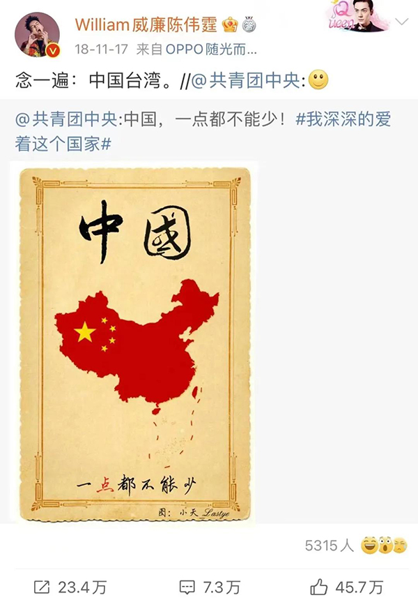 捍卫国家主权、维护领土完整,港澳台艺人齐声表达“中国,一点都不能少!”