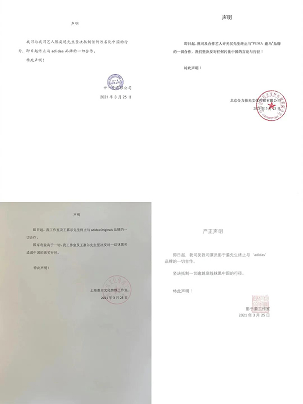 在众多发布终止合作声明的明星中,不乏港澳台明星。他们在第一时间与提出抵制新疆棉花的品牌终止一切合作,坚决反对一切抹黑中伤中国的行径。